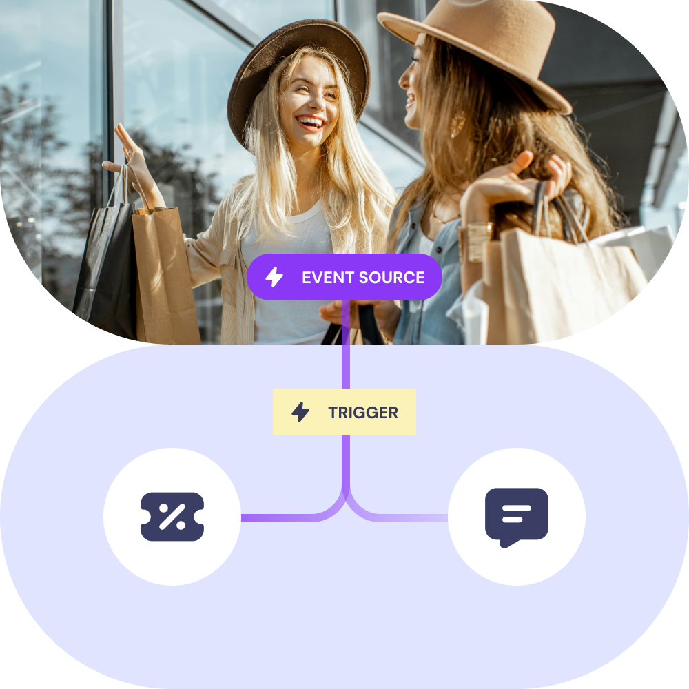 Trigger rewards and actions in real time based on customer behavior, integrated system events, or any signal from any system.